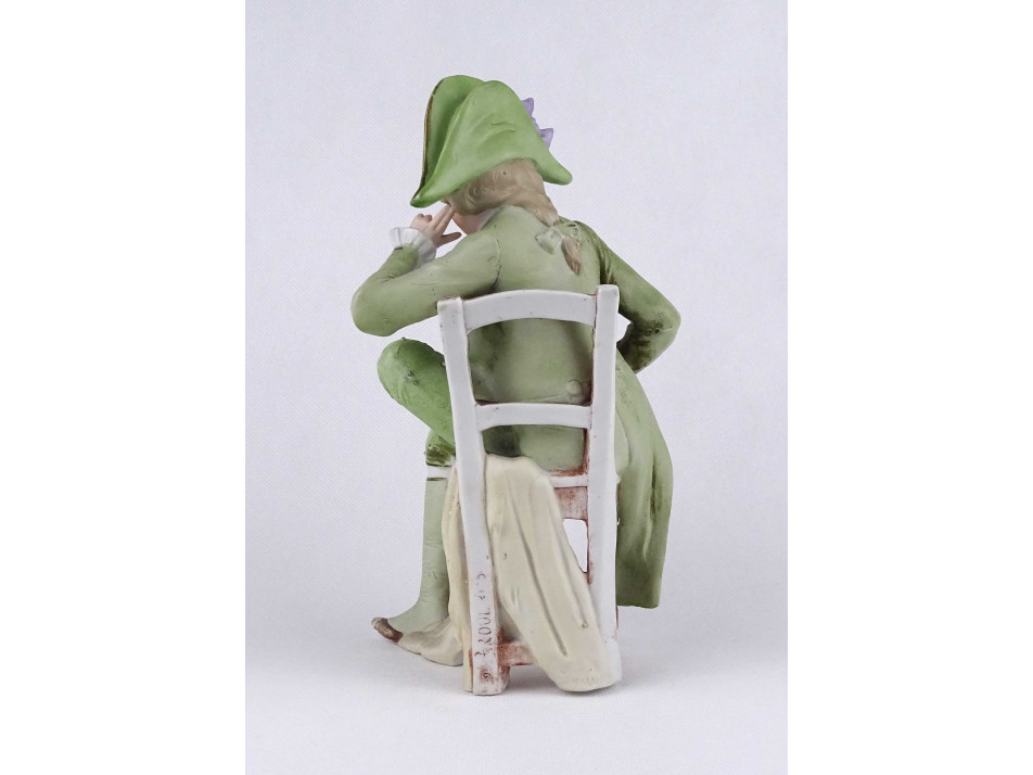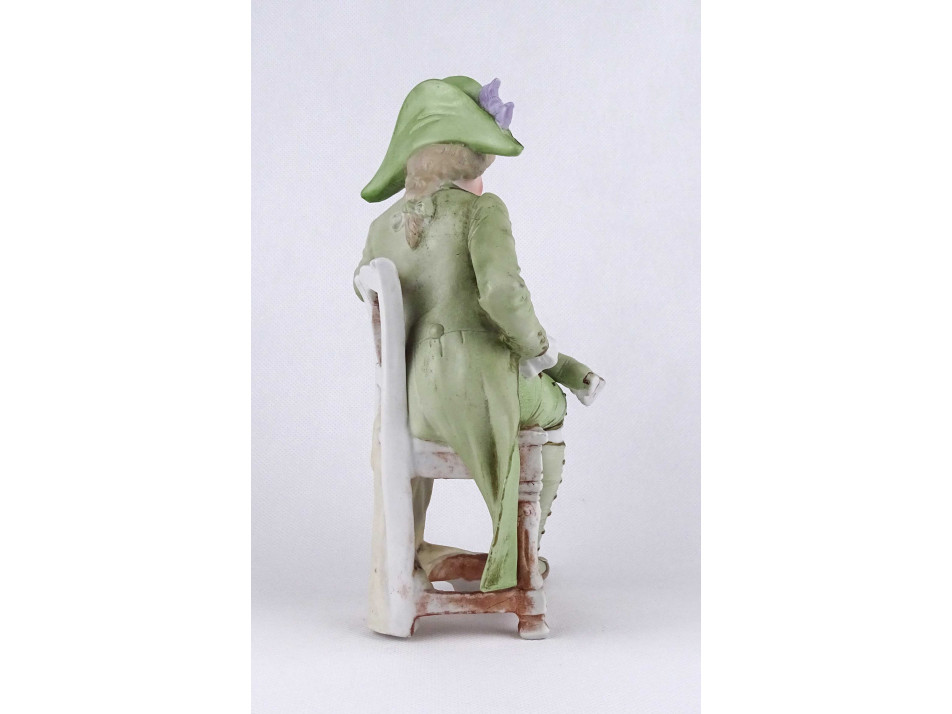 Régi német porcelán széken ülő barokk férfi figura 22 cm