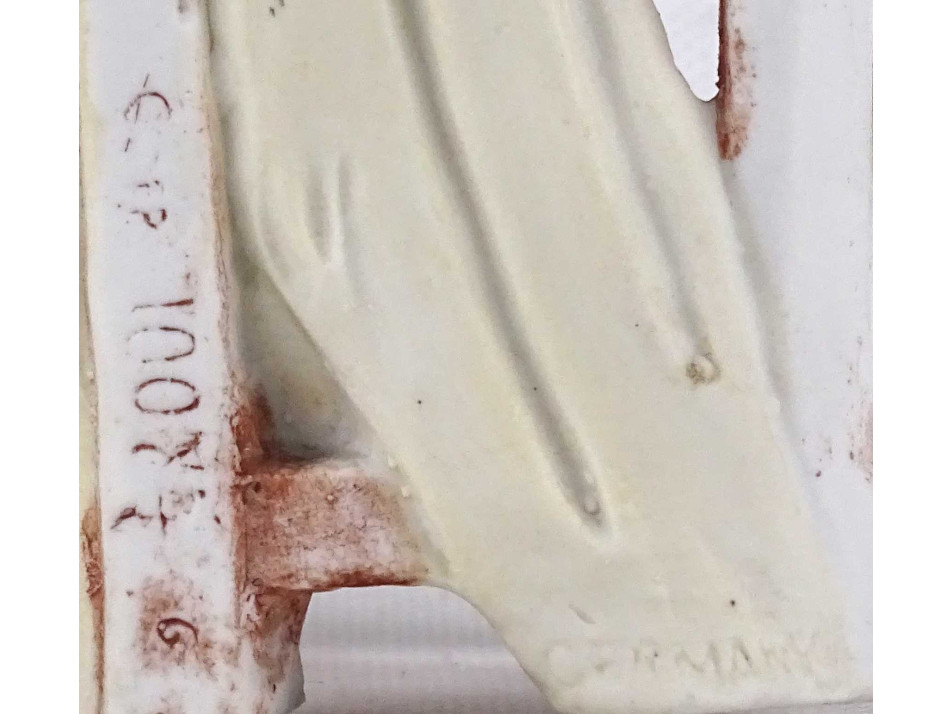 Mellette a figura köpenyének alján mélynyomott felirat: