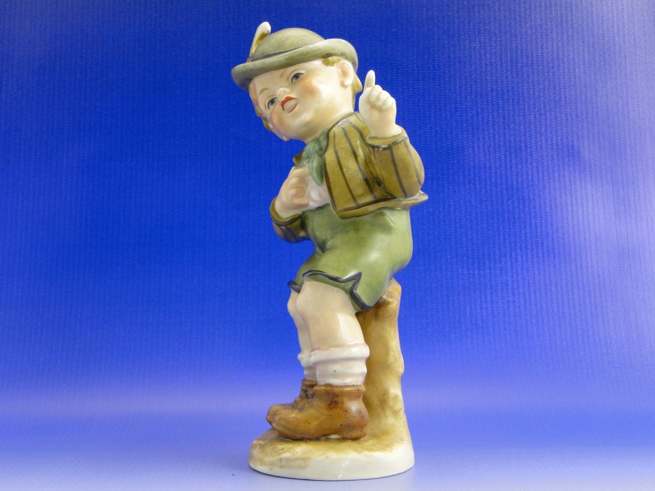 Ritkán előforduló kimondottan nagyméretű hibátlan állapotú porcelán kalapos kisfiú szobor.