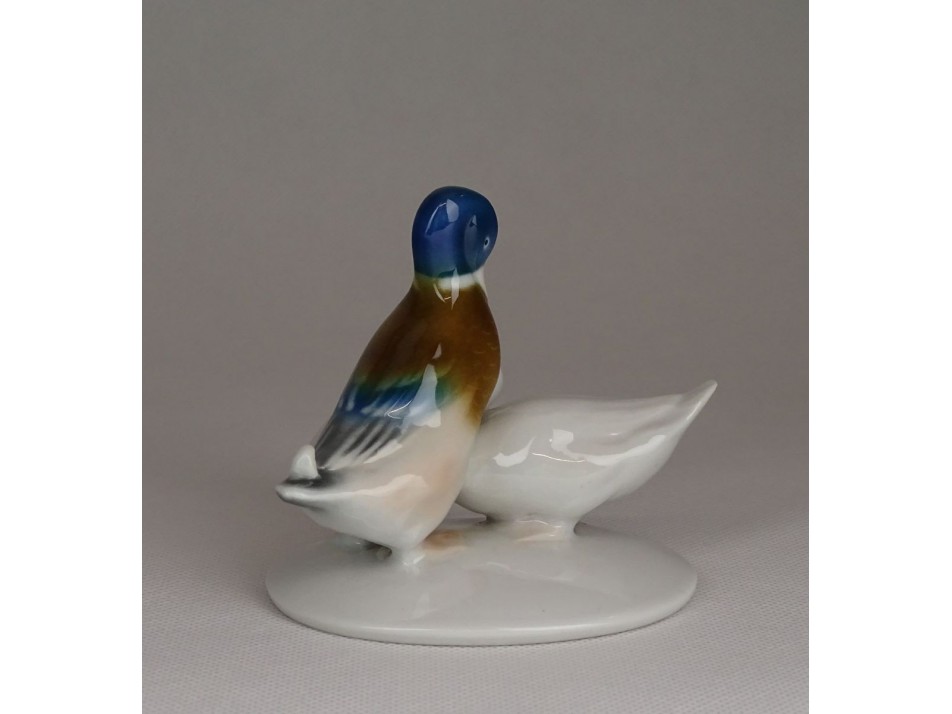 Régi hibátlan állapotú talapzaton álló német porcelán vadkacsa pár.