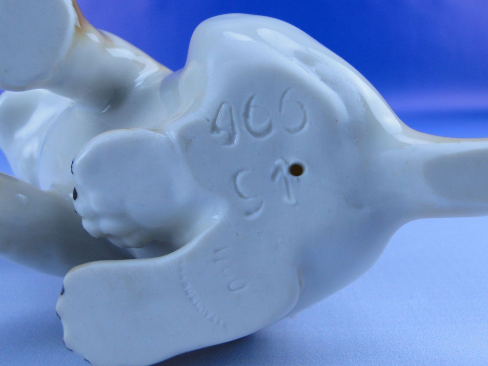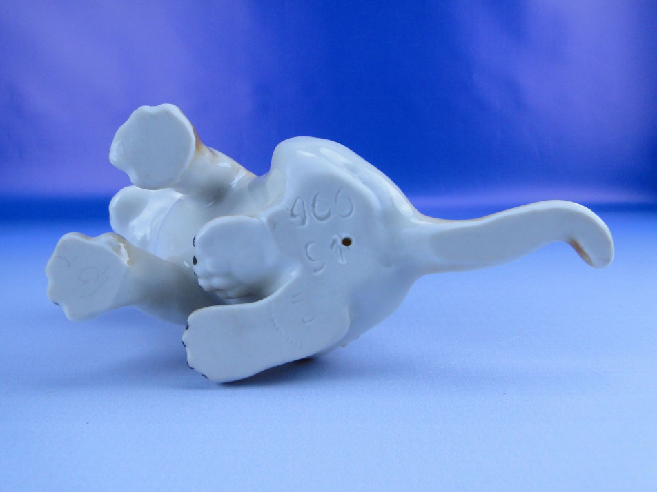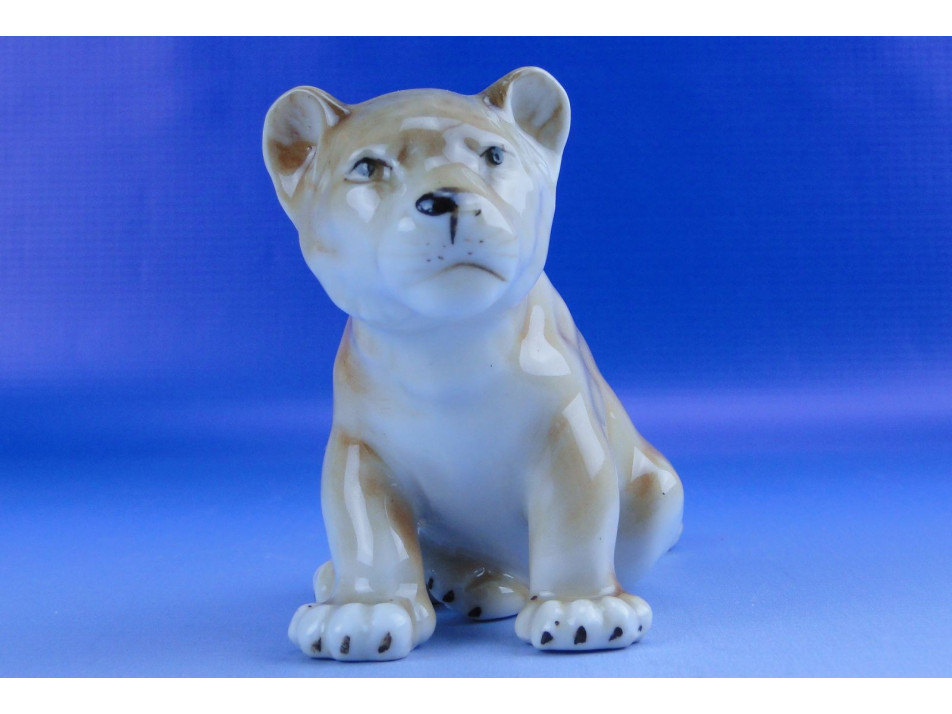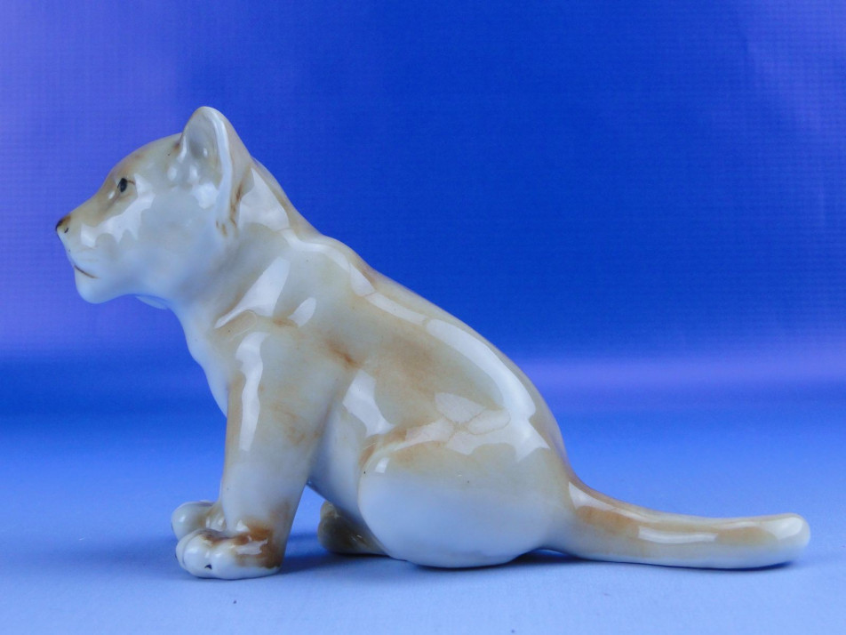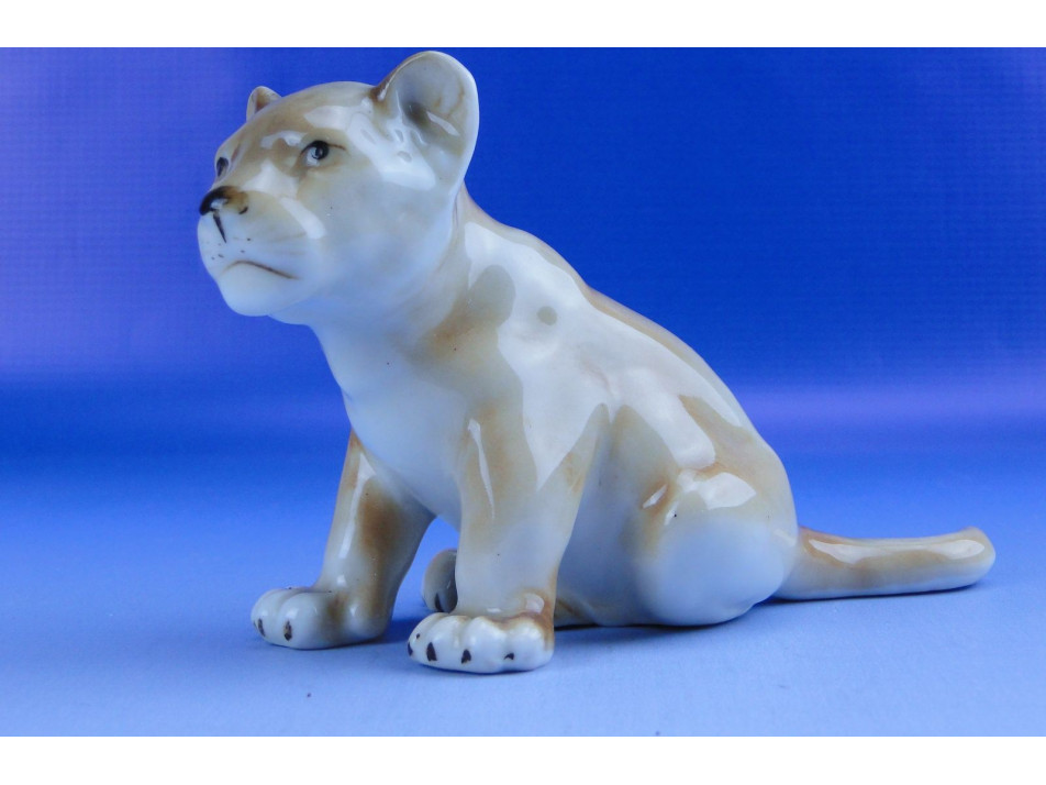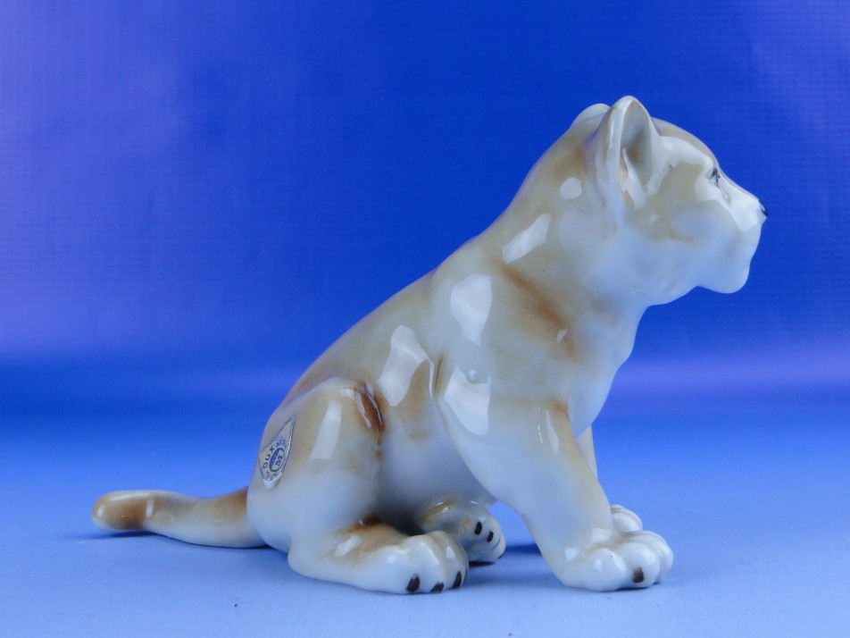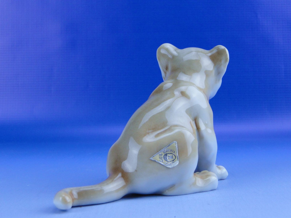 Hibátlan állapotú, jelzett cseh porcelán oroszlánkölyök szobor.
