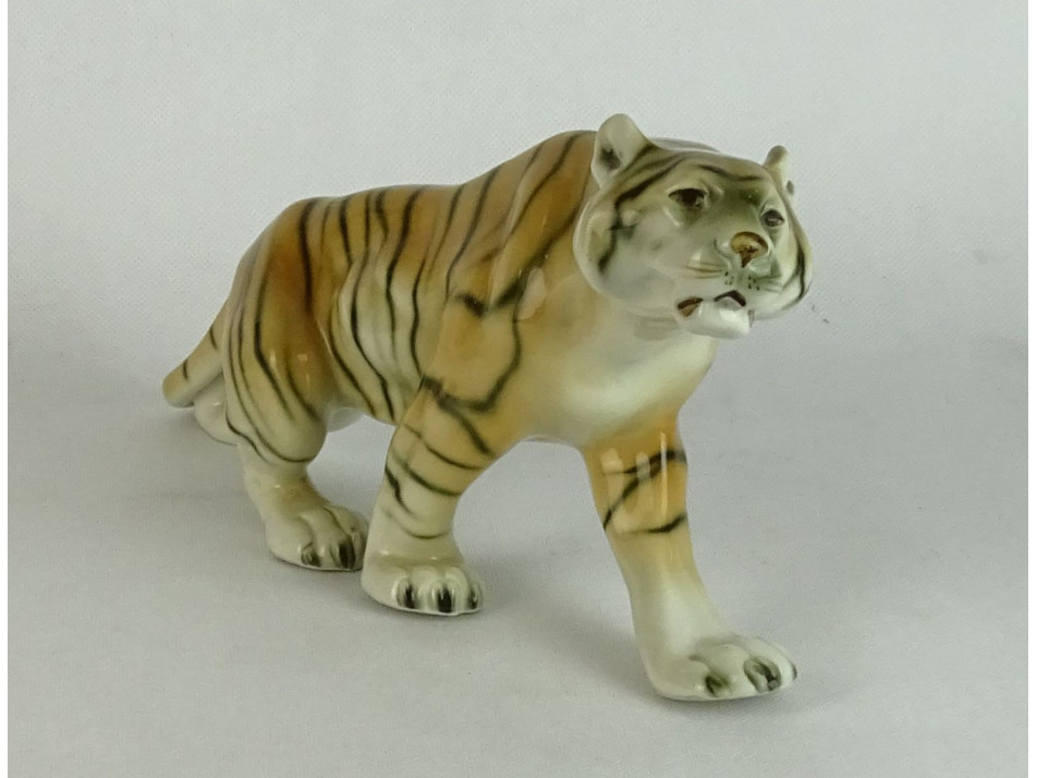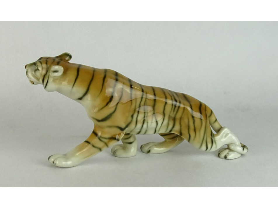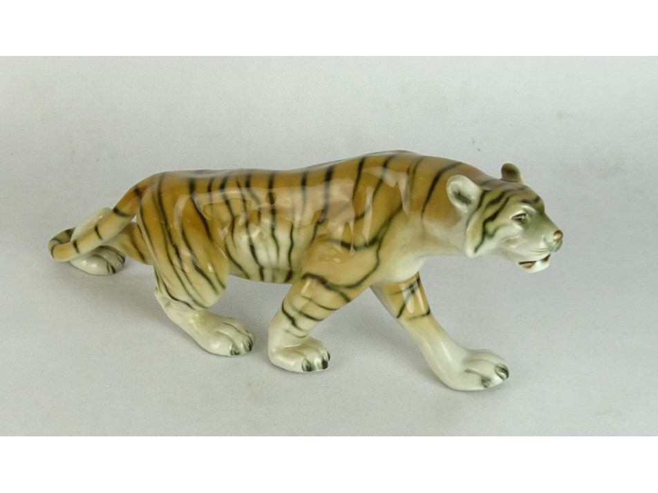 Hibátlan állapotú, nagyméretű, jelzett porcelán tigris.
