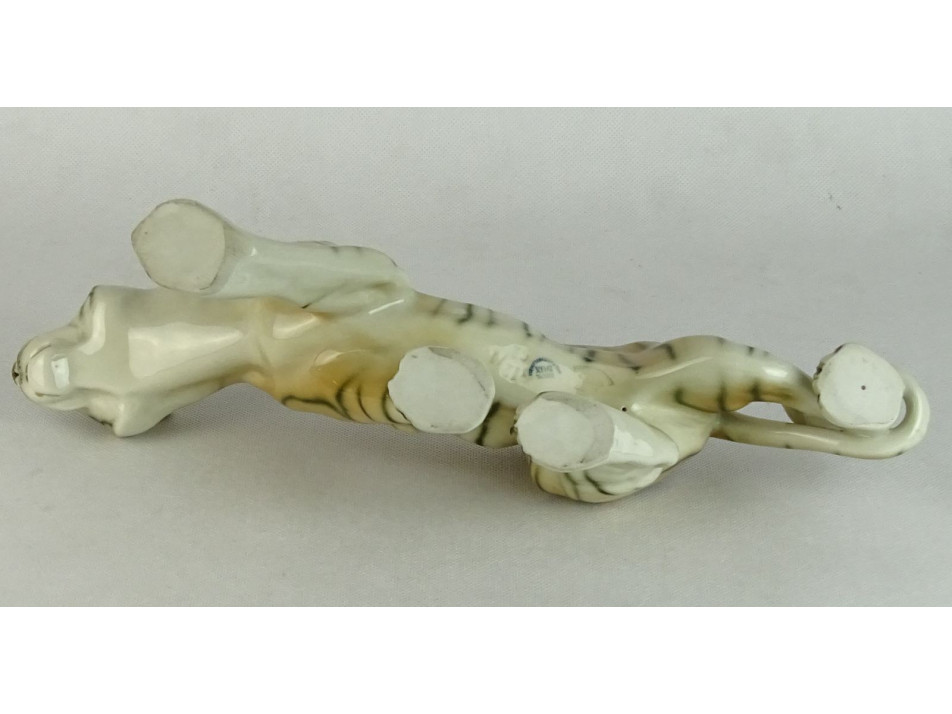 Régi jelzett Royal Dux porcelán tigris 35 cm