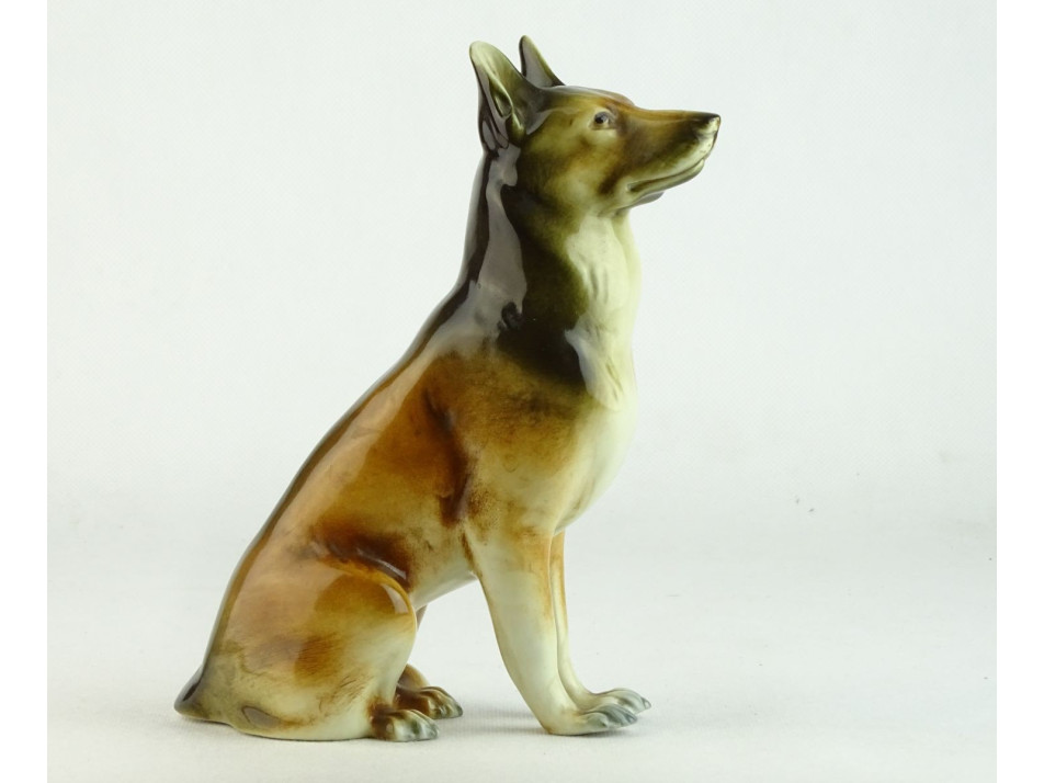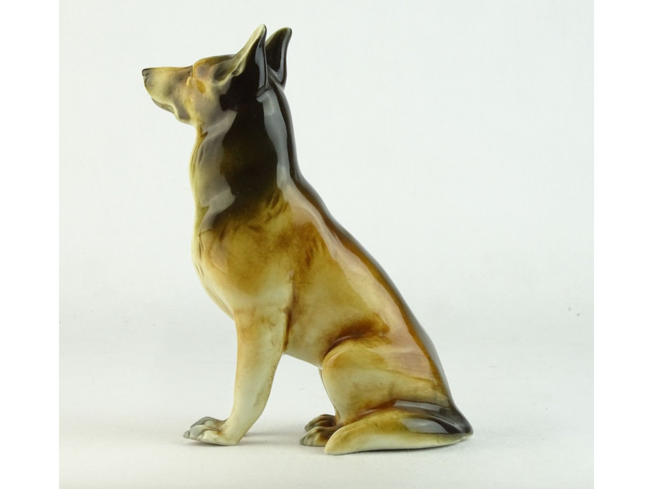 Régi hibátlan állapotú, szép élethű porcelán német juhász szobor, kézi festésű.
