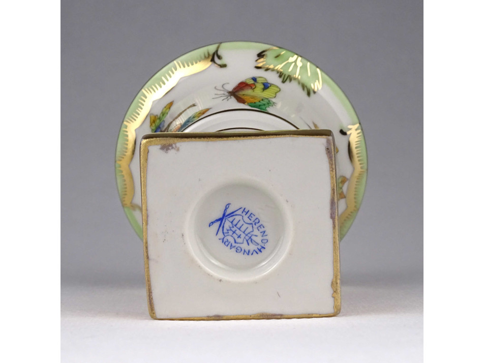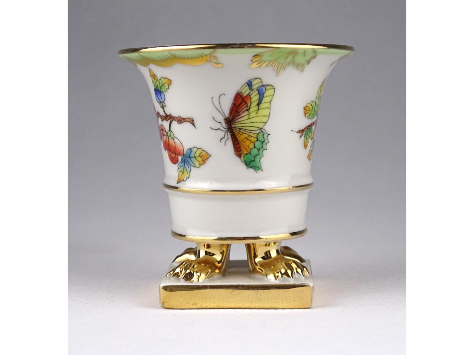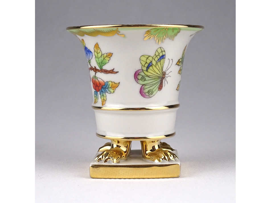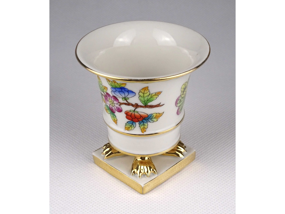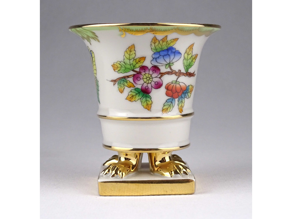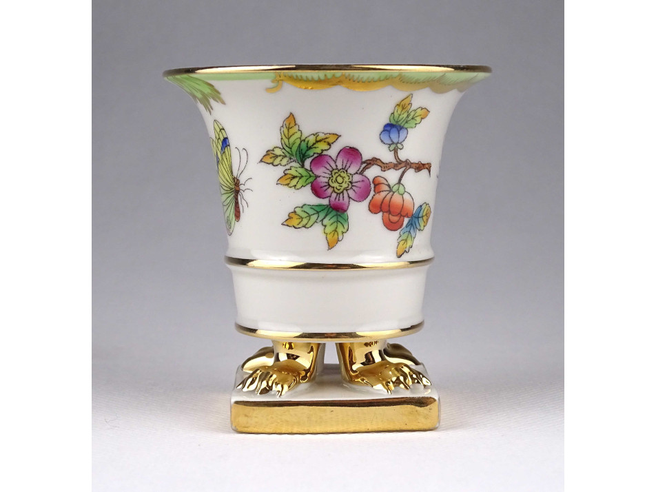 Régi Viktória mintás Herendi oroszlánlábas porcelán kaspó 7.8 cm