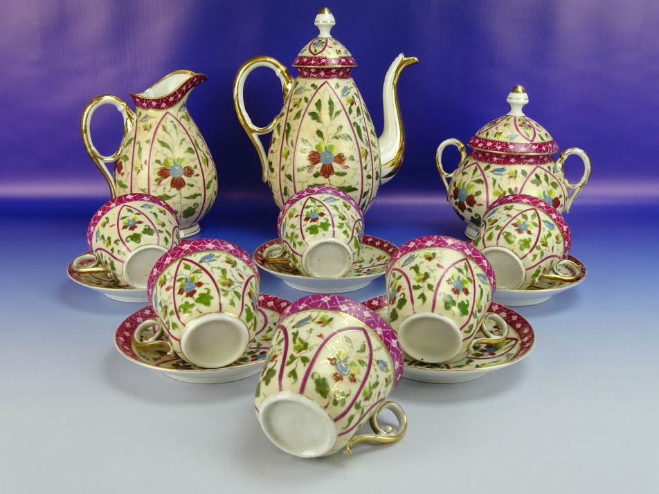Rendkívül díszes, 14 db-os antik vastagon aranyozott porcelán teáskészlet.