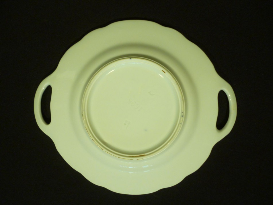 Hibátlan állapotú kék-fehér meisseni mintás elbogeni tál, kétfülű tányér.