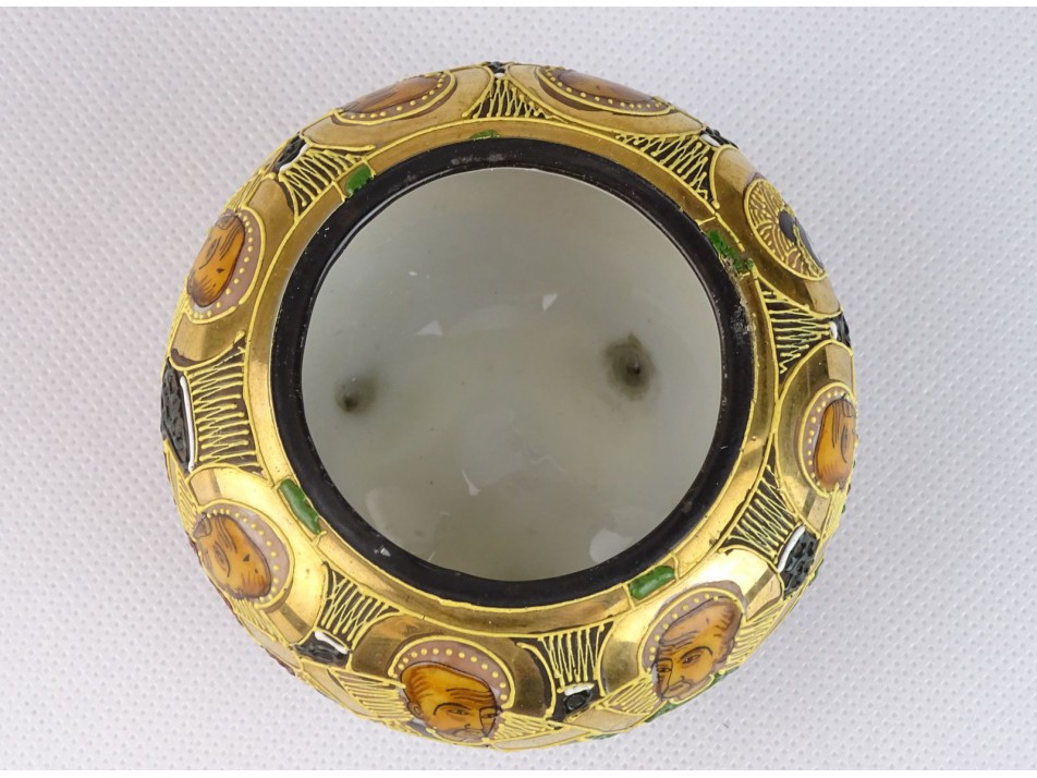 Szép állapotú, régi, kisméretű, jelzett, japán porcelán, lábakon álló váza.