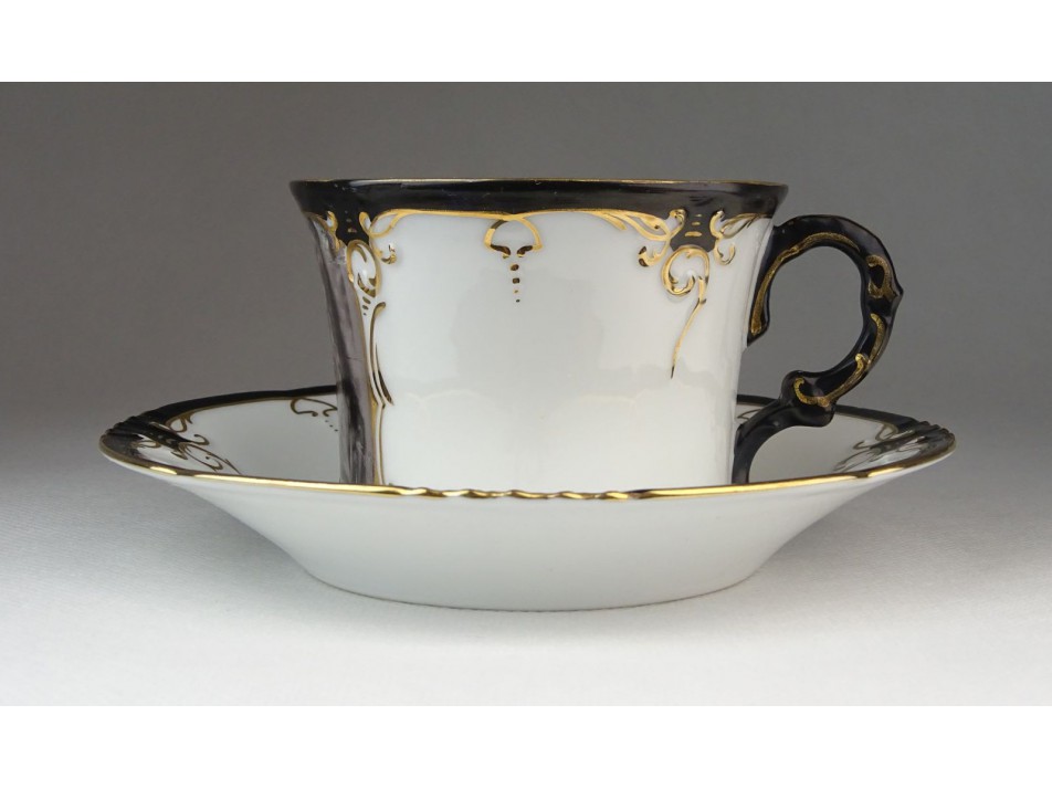 Hibátlan állapotú, antik, jelzett, porcelán teáscsésze, az 1900-as évek első feléből. Rajta családi fotó díszítés, gazdag aranyozás található.