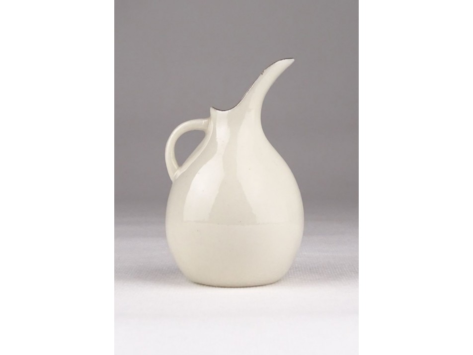 Régi, jelzett, kézzel festett angol porcelán kisméretű dísztárgy, porcelán kancsó, korsó.