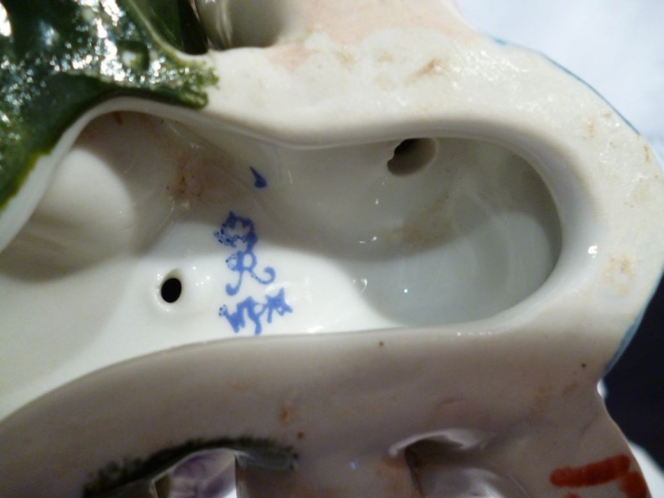 Gyönyörű, hibátlan műtárgy, két virágindát tartó angyal szerű figurával, alján kék koronás jelzéssel R WPM - Württembergische Porzellanmanufaktur.