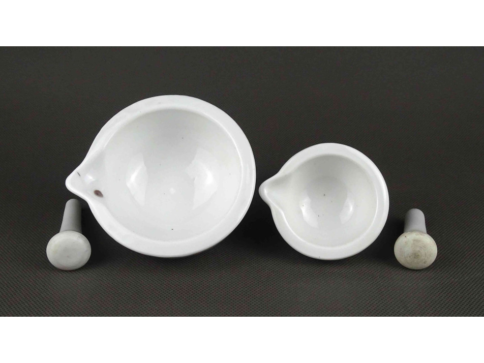 Antik kisméretű porcelán gyógyszerészeti patikamozsár pár