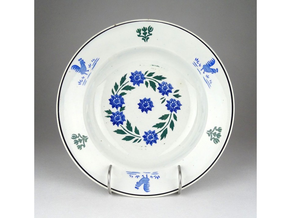 Antik, hibátlan állapotú kakasos, búzavirágos jelzett porcelán falitányér, dísztányér az 1900-as évek első feléből.