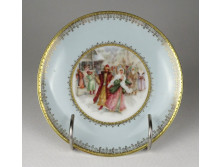 Régi, szép állapotú, akasztási lehetőséggel rendelkező porcelán. Narancssárga színű sapkás és kendős fiú porcelán falidísz.