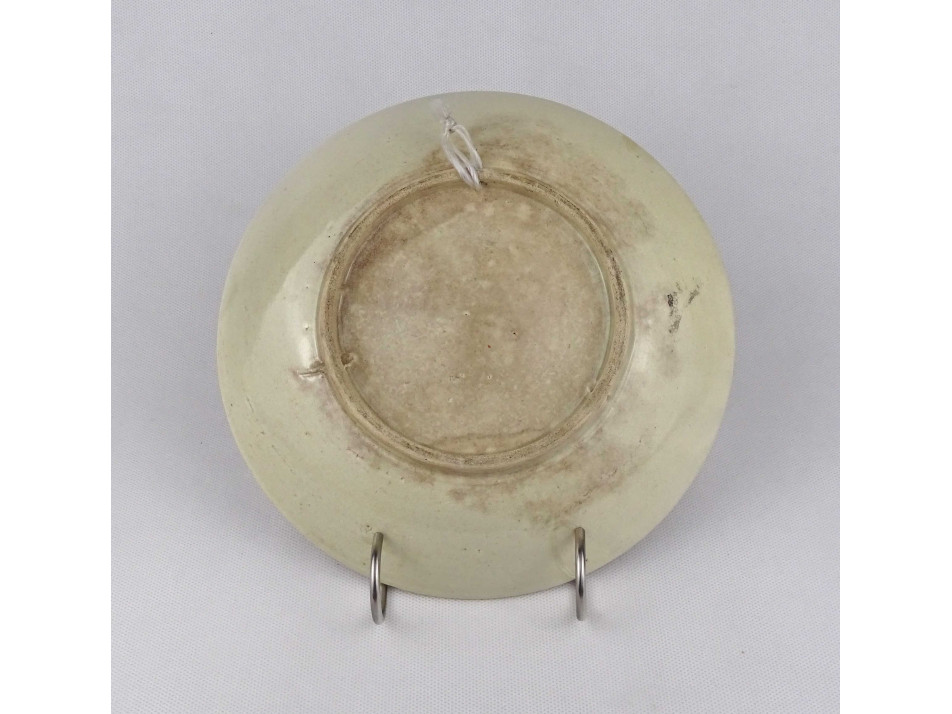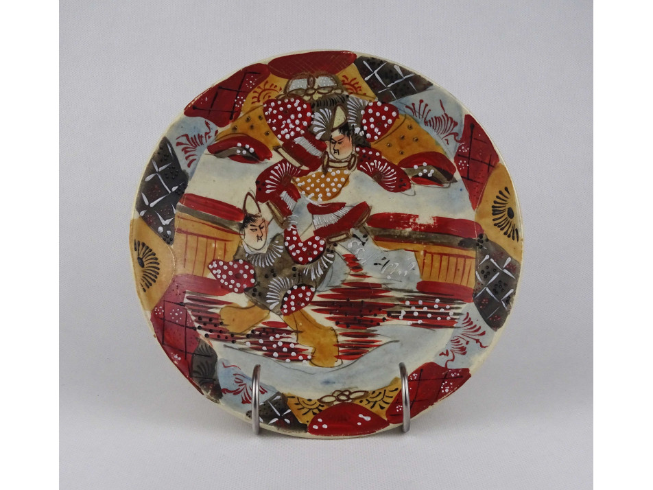 Antik Japán Satsuma kézzel festett szamuráj alakos fajansz tányér 21.5 cm