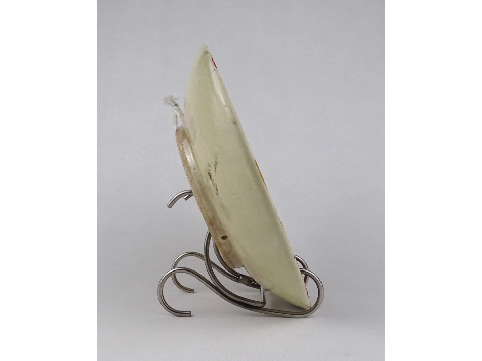 Antik, hibátlan állapotú, gazdagon díszített, kézzel festett, japán szamuráj alakos fajansz dísz tál, falitál. Falraakasztási lehetőséggel.