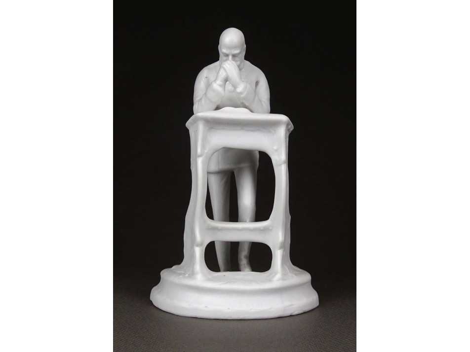 Antik imádkozó Ferenc József biszkvit porcelán szobor talapzaton 14 cm