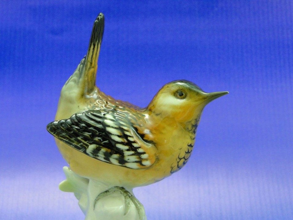Hibátlan állapotú porcelán madár, ökörszem talapzaton, kézi festéssel díszítve.