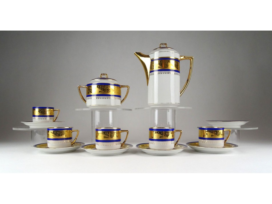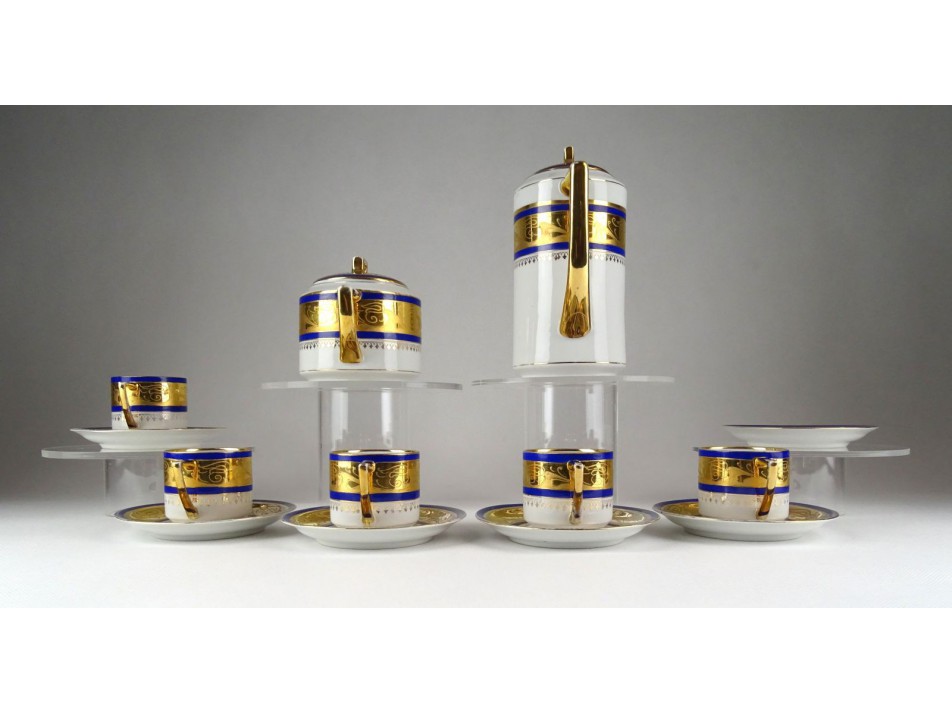 Régi, hibátlan állapotú, gazdagon aranyozott, impozáns porcelán kávéskészlet.