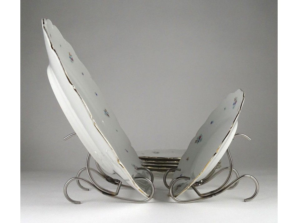 Régi, szép állapotú 7 darabos porcelán készlet, süteményes készlet, apró virágokkal díszítve.