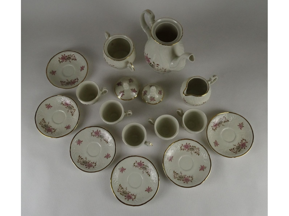 Szép állapotú, aranyozott, jelzett porcelán kávéskészlet aranyozással és virágmotívumokkal díszítve.
