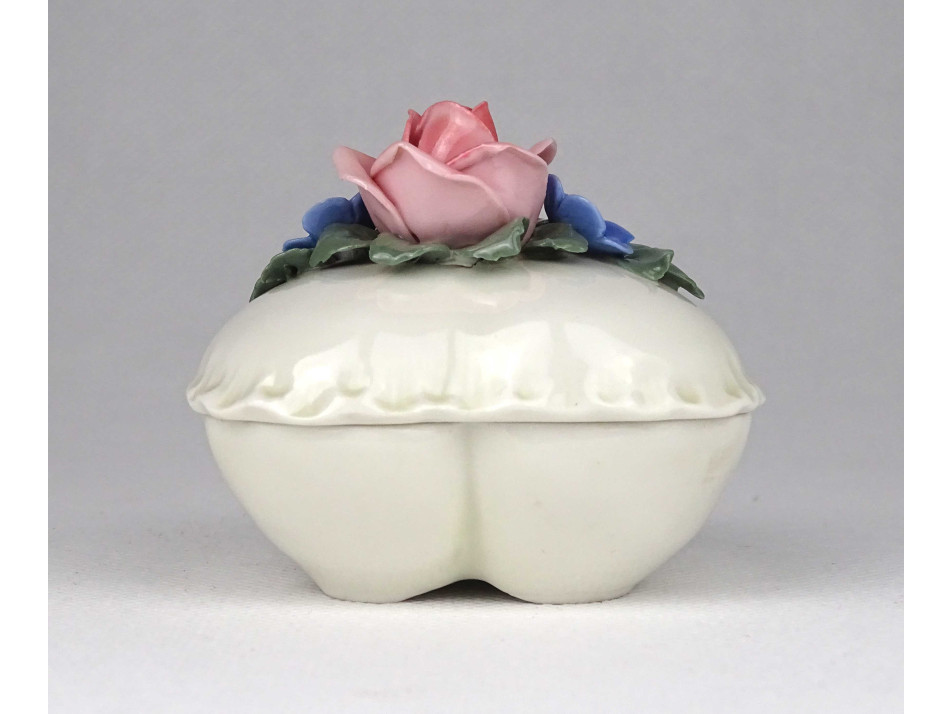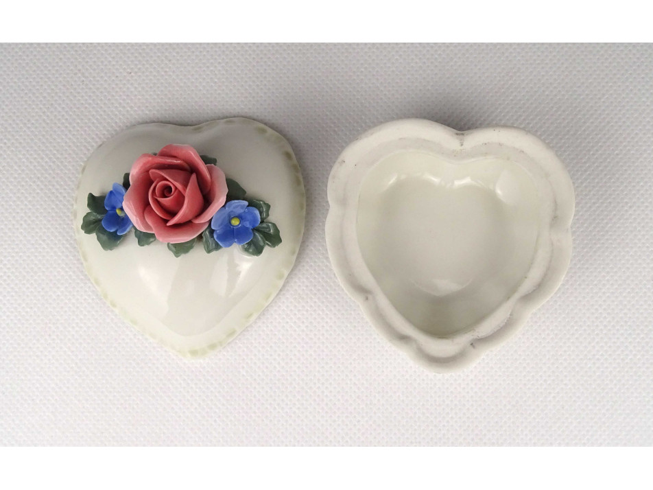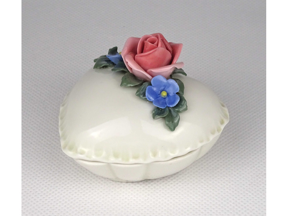 Régi szív alakú rózsás ENS porcelán bonbonier