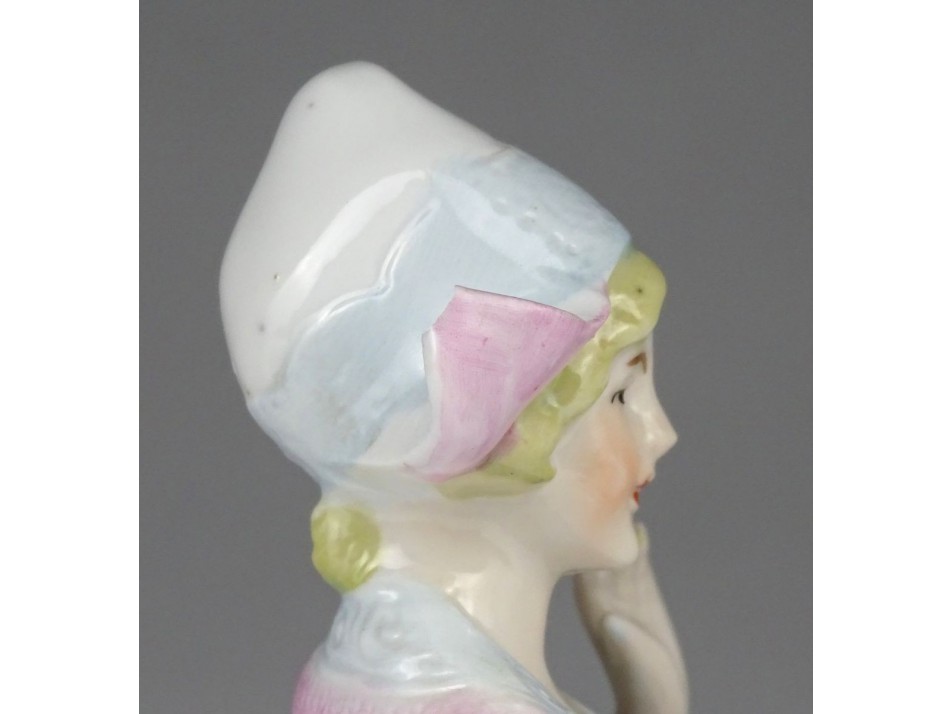 Antik kézzel festett porcelán teababa test az 1800-as évek végéről. Baba felső test, kezében virág. A kalap peremén apró lepattanás található, lásd fotó.