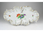 Kosaras szélű, hibátlan állapotú, virág mintás, levél alakú, Herendi porcelán asztalközép kínáló tál.
