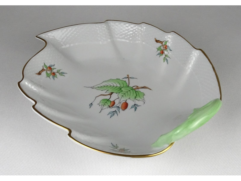 Régi hecsedlis levél alakú Herendi porcelán tál kínáló tál