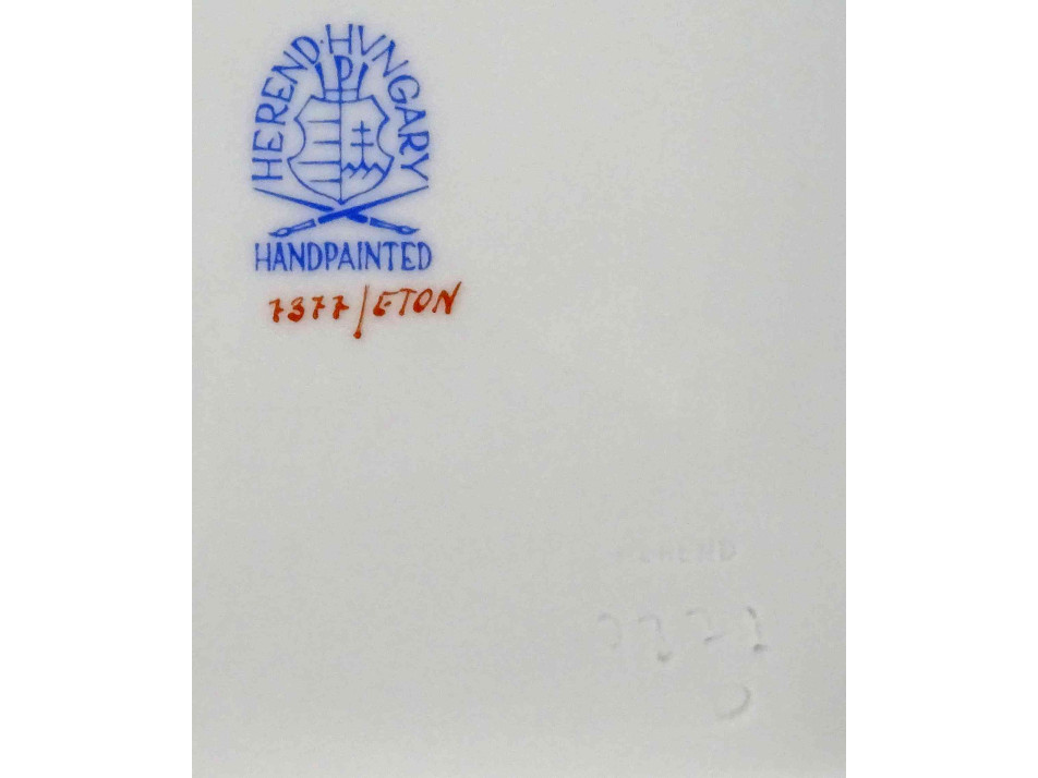 Régi, hibátlan állapotú, jelzett, szélén áttört, fonott, szögletes alakú, kézzel festett, Eton mintás Herendi porcelán kínáló tál.