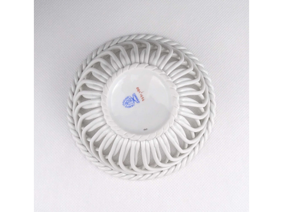 Hibátlan állapotú, gyönyörű fonatos, áttört díszes, I. osztályú Herendi porcelán kosárka.