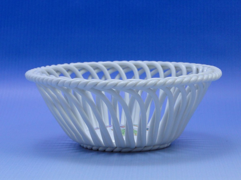 Hibátlan állapotú, gyönyörű fonatos, áttört díszes I. osztályú herendi porcelán, kosárka.
