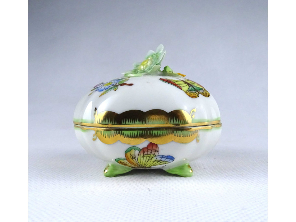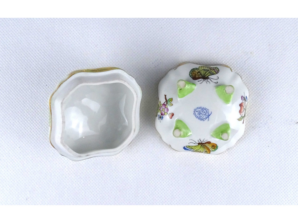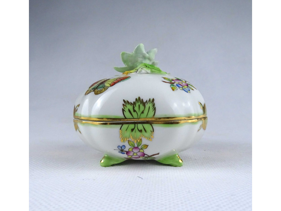 Nyolcszög alakú Viktória mintás Herendi porcelán lábas bonbonier