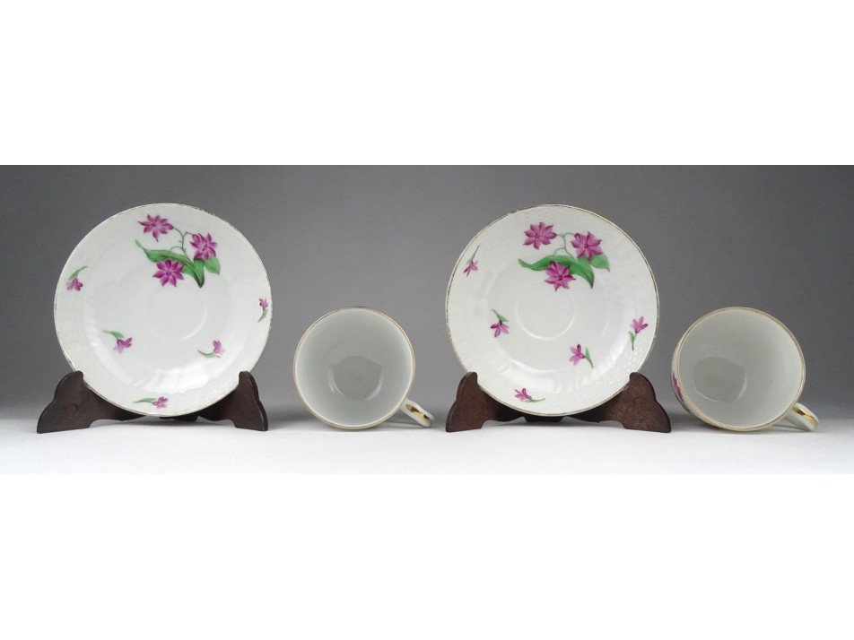 Antik jácint mintás óherendi porcelán kávéscsésze pár