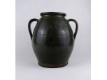 Régi nagyméretű, zöld népi cserép korsó 24 cm
