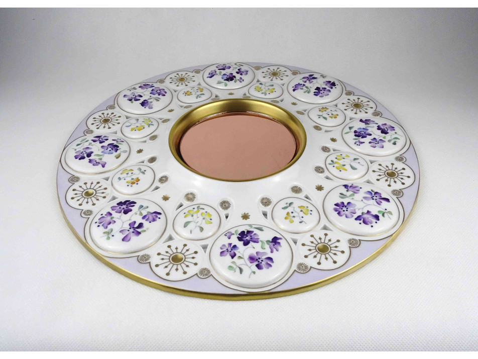 Hibátlan állapotú, nagyméretű, áttört szélű, virágmintás, Herendi porcelán tükör, porcelán keretes falitükör. Teljesen hibátlan, azonnal ajándékba adható állapotban van. Aranyozása karcmentes, makulátlan!