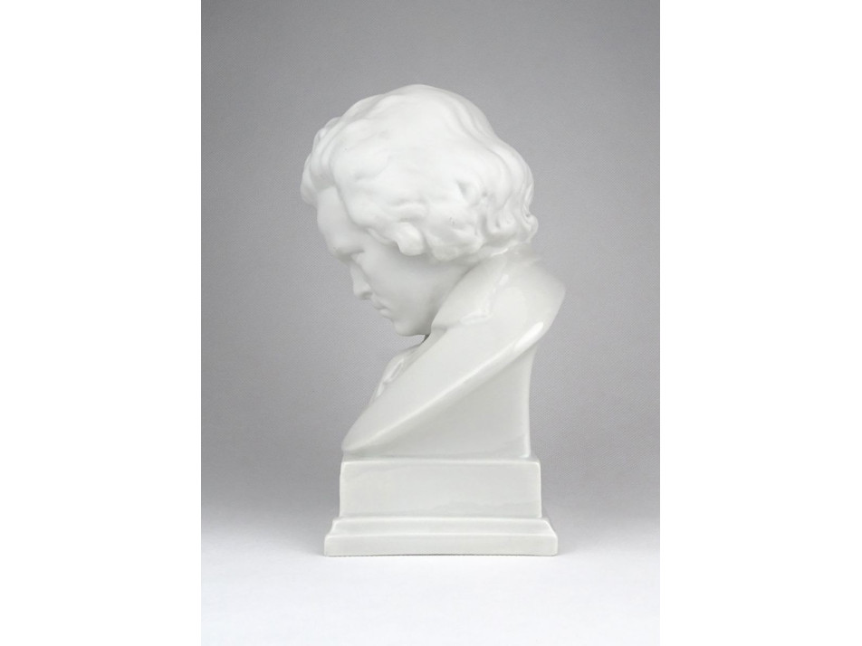 Régi, szép állapotú, jelzett, fehér színű Herendi porcelán Beethoven büszt, mellszobor.