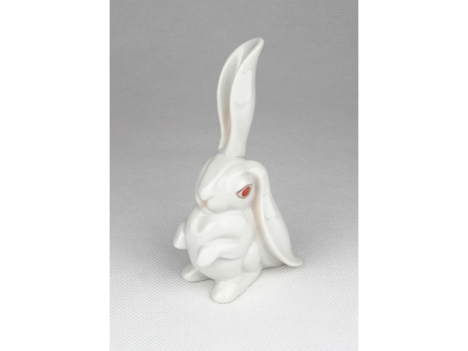 Régi, jelzett, hibátlan állapotú, kézi festéssel dísztett, piros szemű Herendi porcelán nyúl.