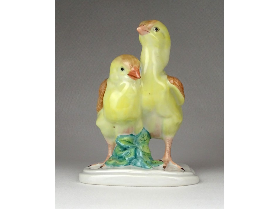 Hibátlan állapotú Herendi porcelán kiscsibe pár, talapzaton. A kisebb csibe csőre restaurált.