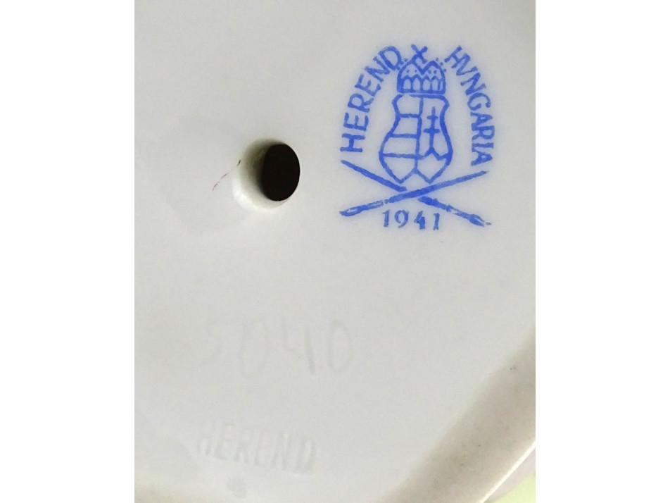 Régi, hibátlan állapotú, jelzett Herendi porcelán madár, harkály figura. Csőre restaurált.