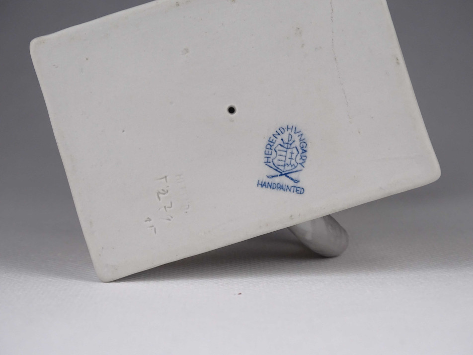 Régi, hibátlan állapotú, kézzel festett Herendi porcelán figura talapzaton.