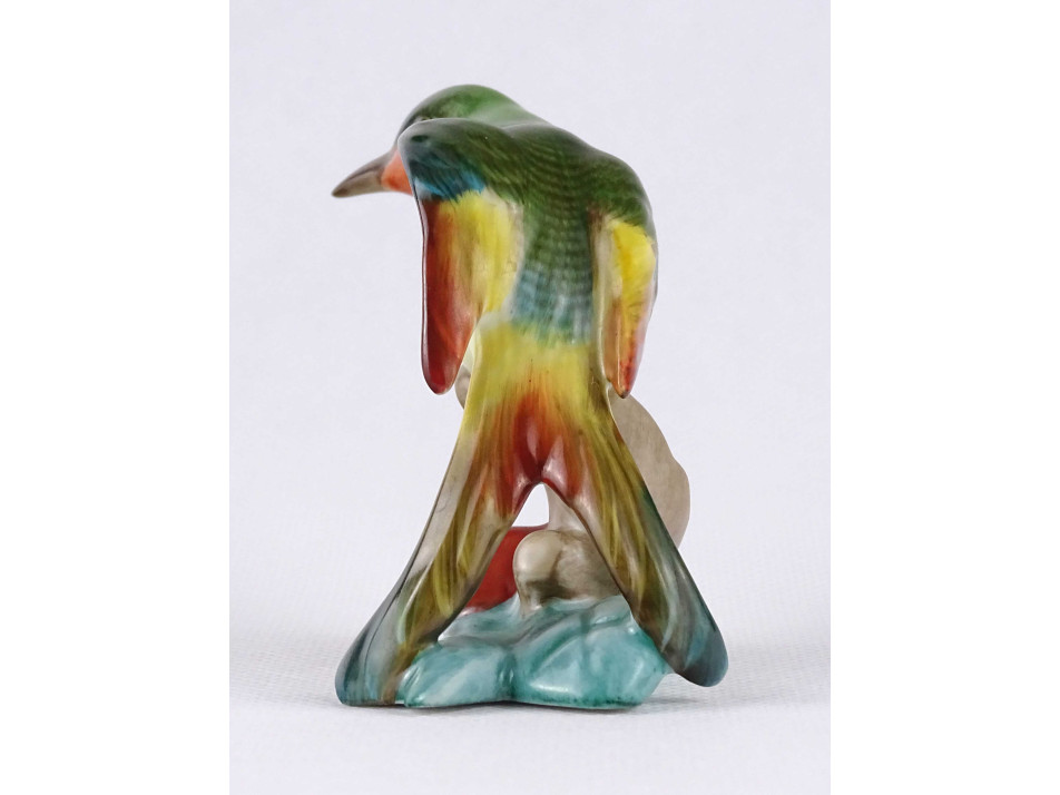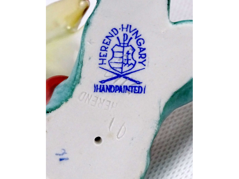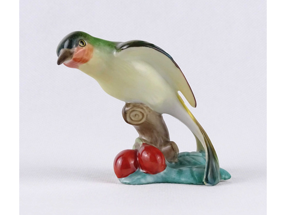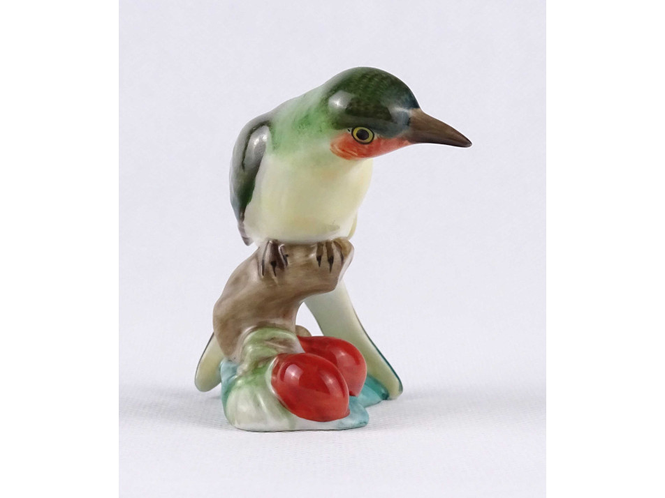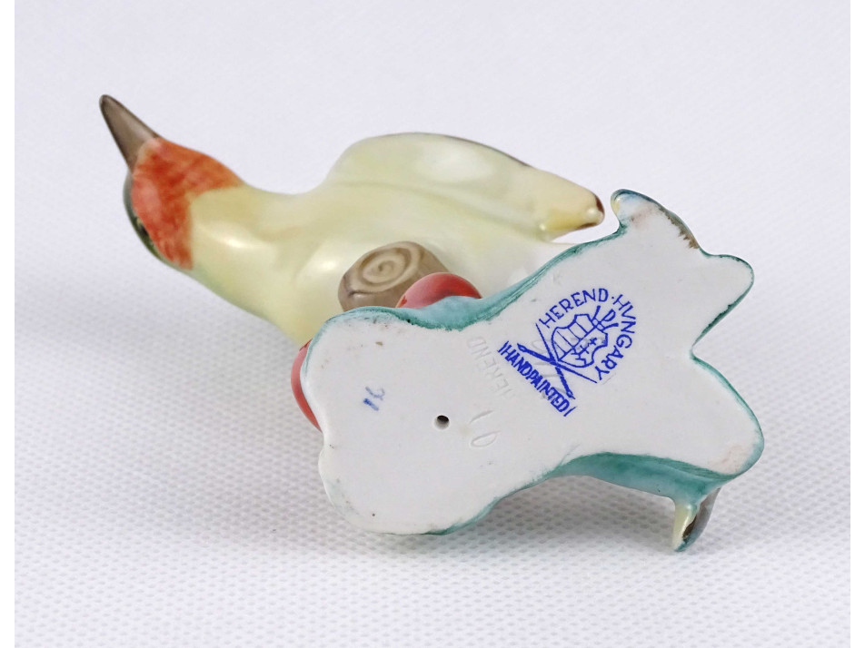 Régi Herendi porcelán madár figura csipkebogyós talapzaton 7.4 cm