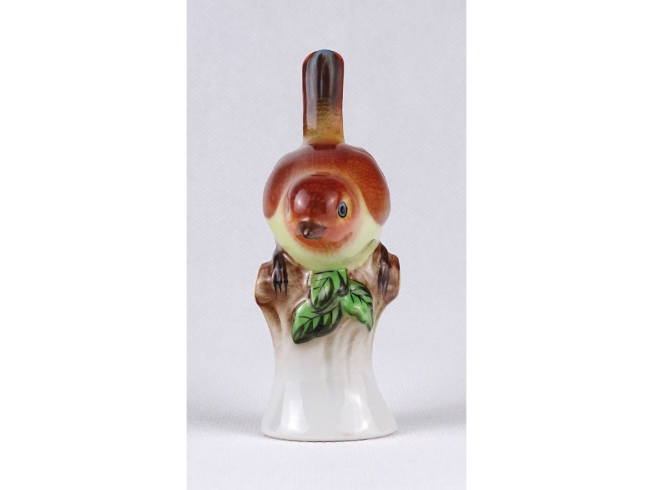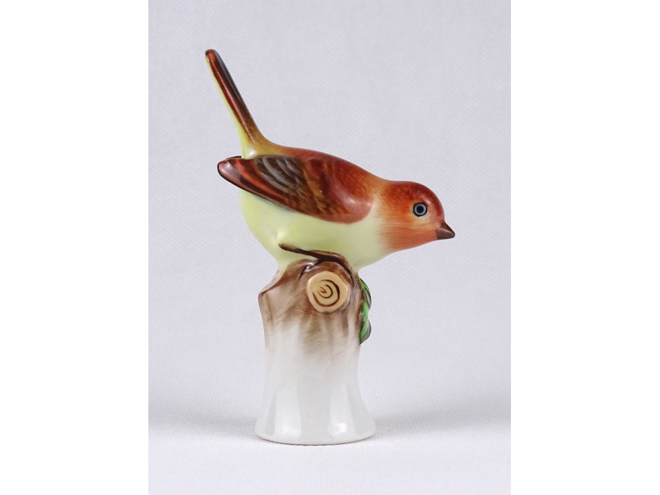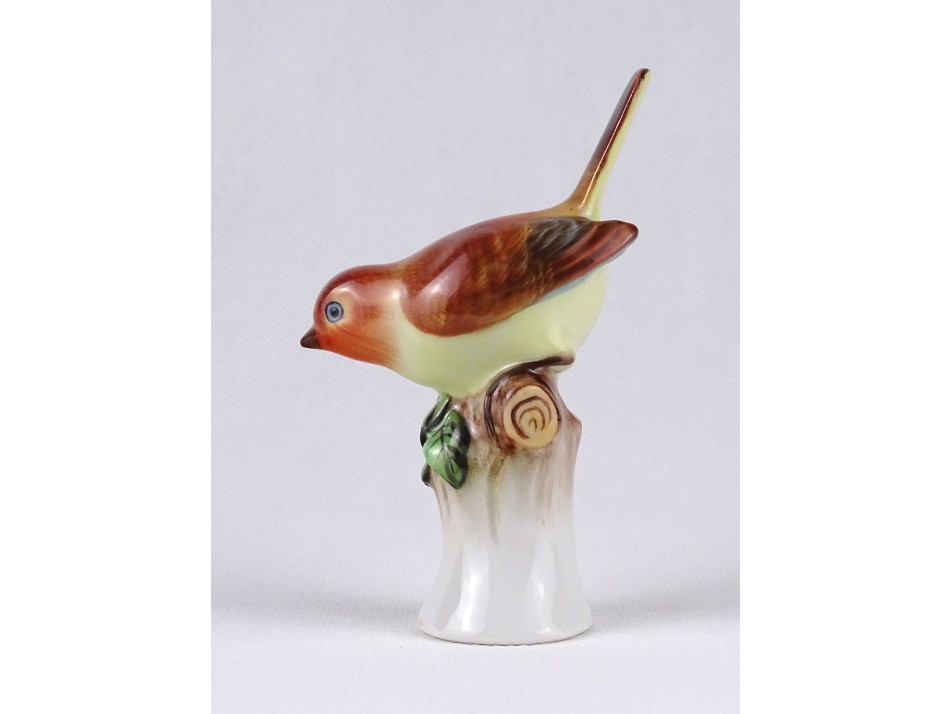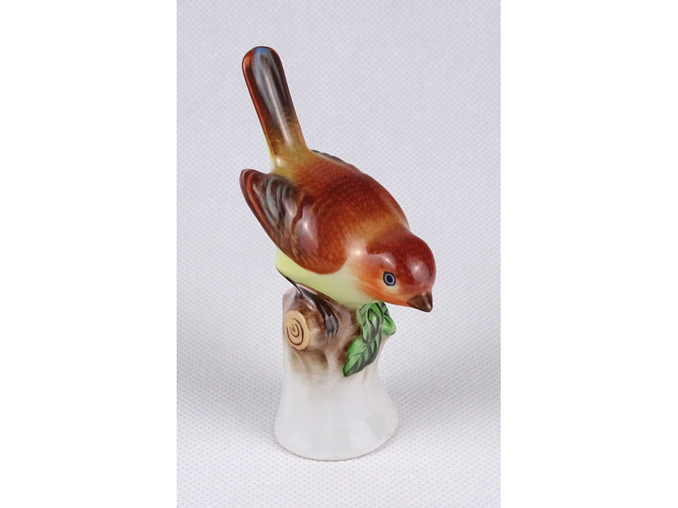 Hibátlan állapotú, kis méretű Herendi porcelán madár figura talapzaton.