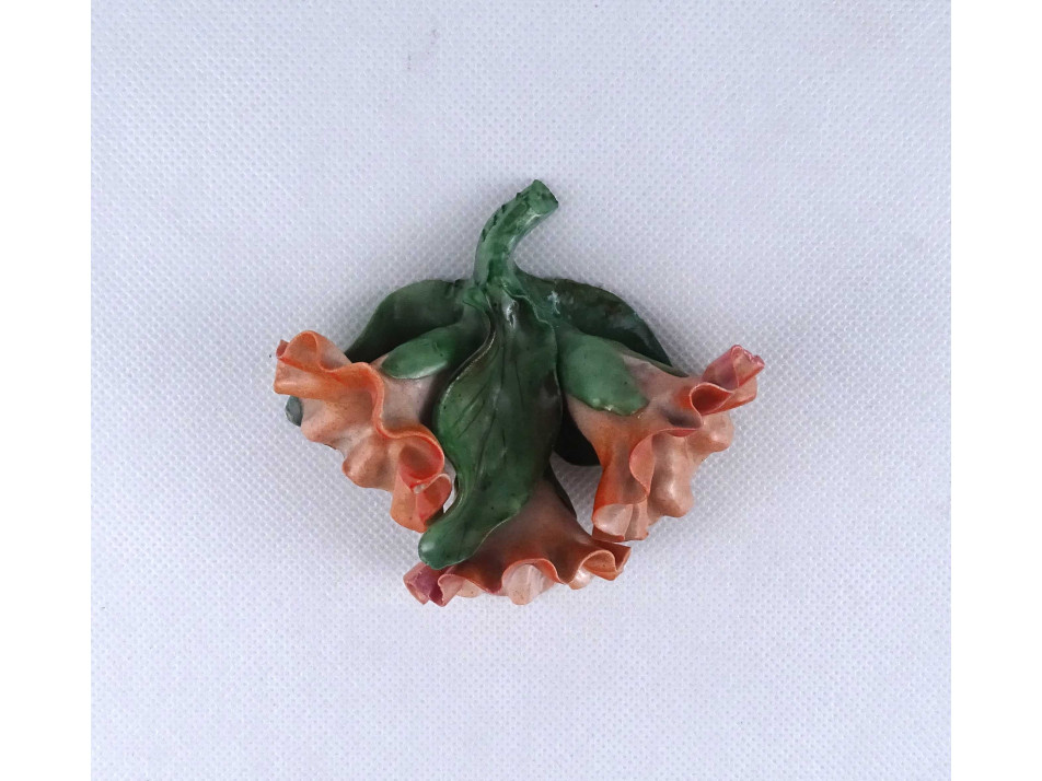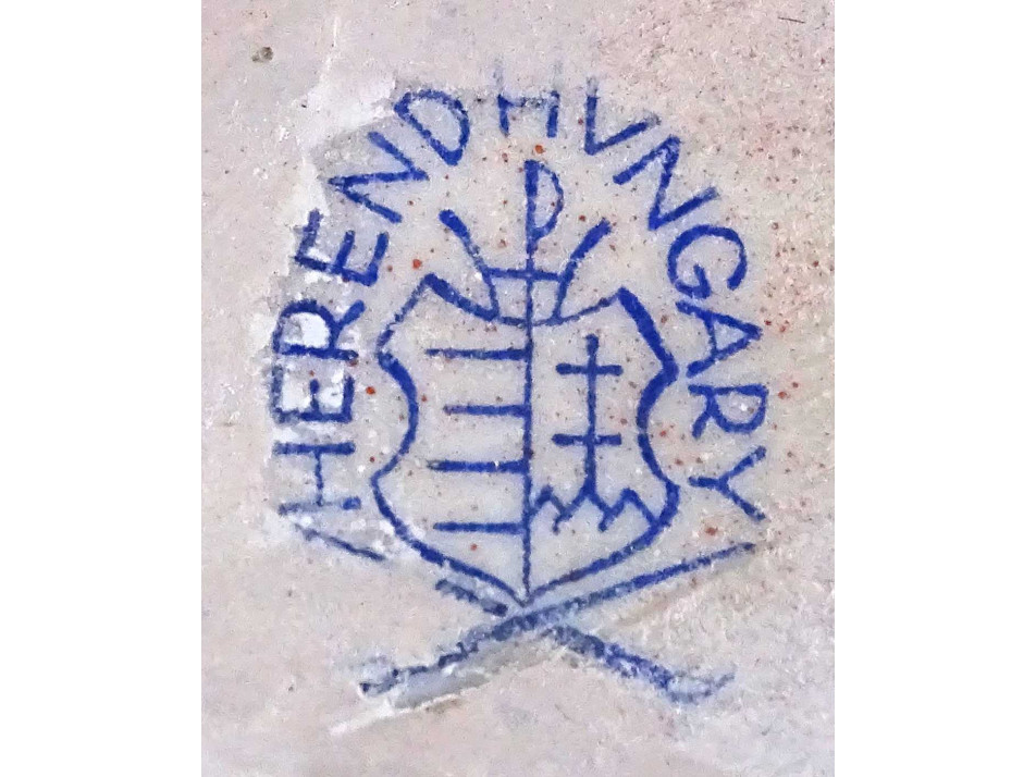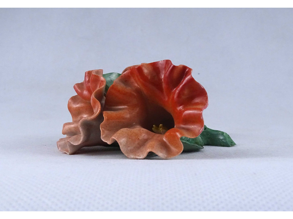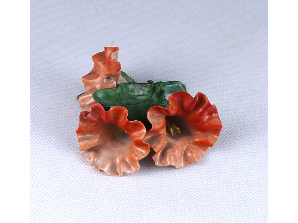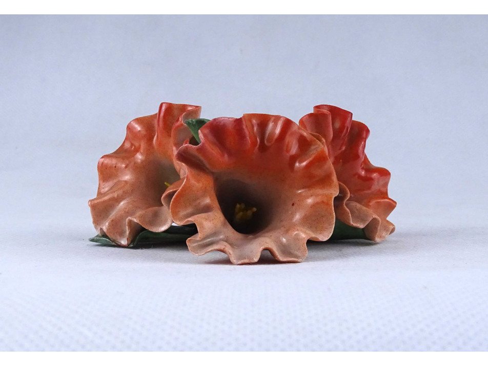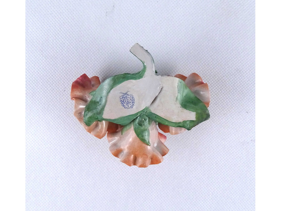 Régi jelzett Herendi porcelán hármas piros virág. Az egyik levél restaurátor által szakszerűen javított.