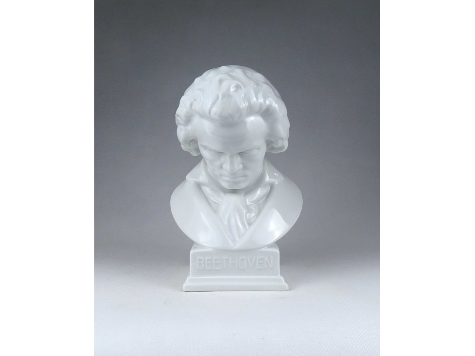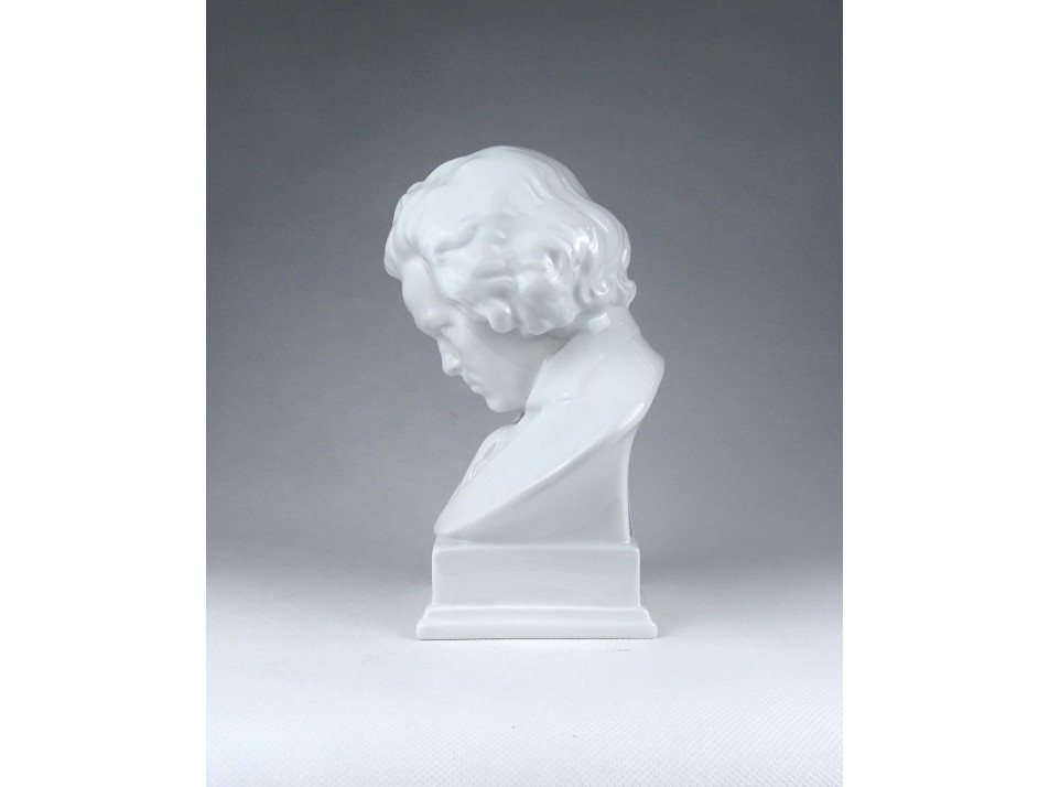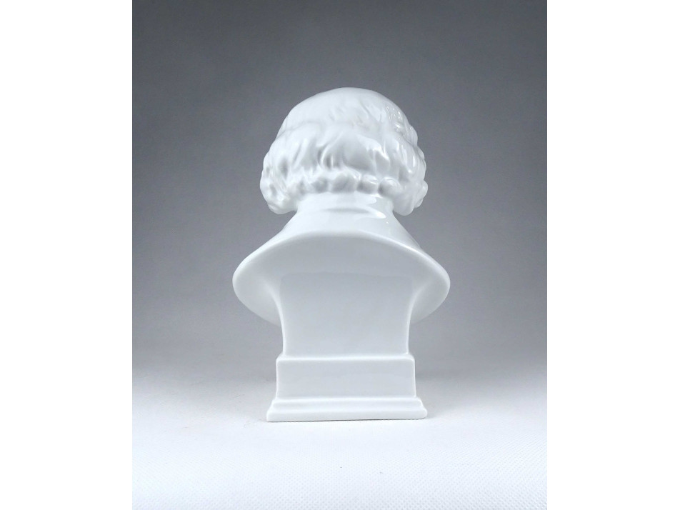 Régi, hibátlan állapotú, jelzett, fehér színű, festetlen Herendi porcelán Beethoven büszt, mellszobor.