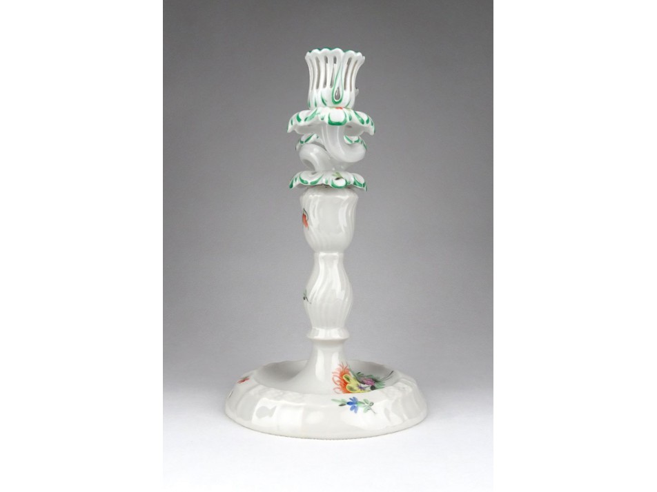 Régi hibátlan kétágú virág díszítéses Herendi porcelán gyertyatartó. A gyertyatartó felső dupla része levehető, így szimpla gyertyatartókén is használható.