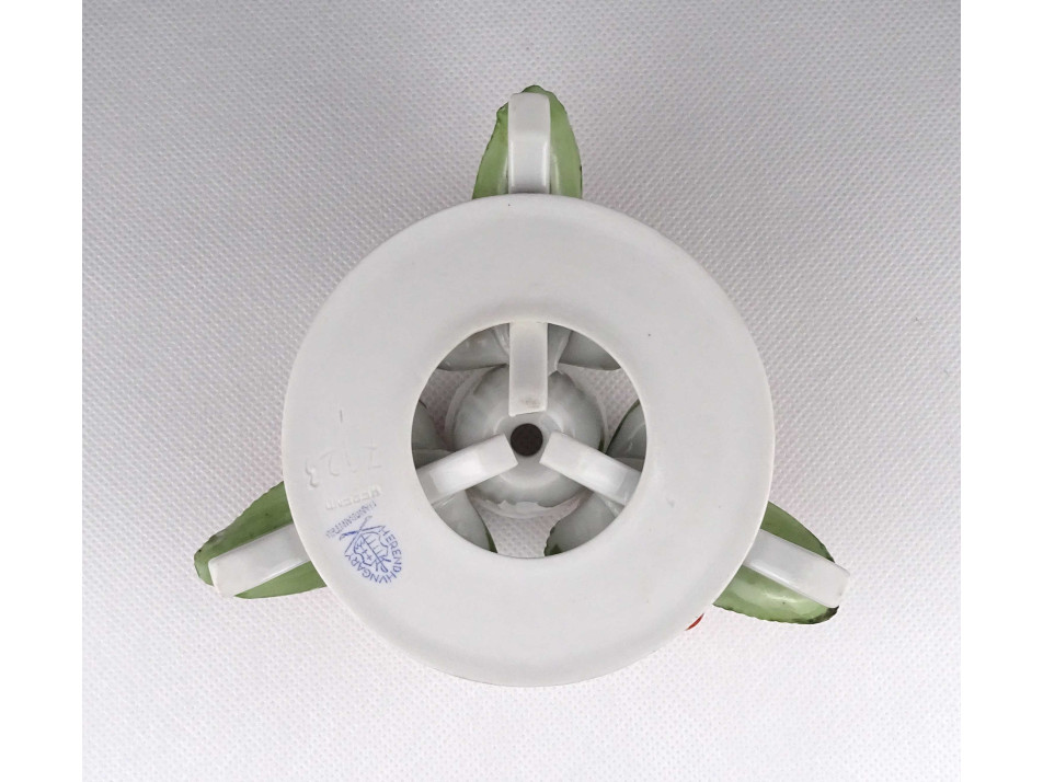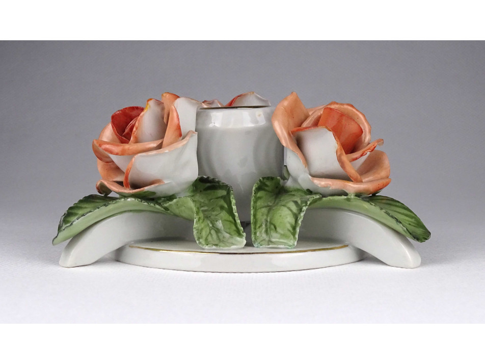 Szép állapotú, Herendi porcelán gyertyatartó három plasztikus vörös rózsával díszítve. A rózsák szirmai és levelei restaurátor által szakszerűen javítottak.