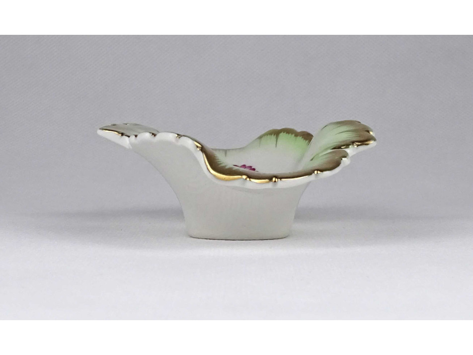 Régi hibátlan állapotú vastagon aranyozott Viktória mintás, lepke, pillangó díszítéses, levél alakú Herendi porcelán tál, hamutál.