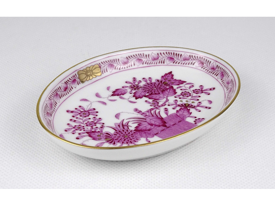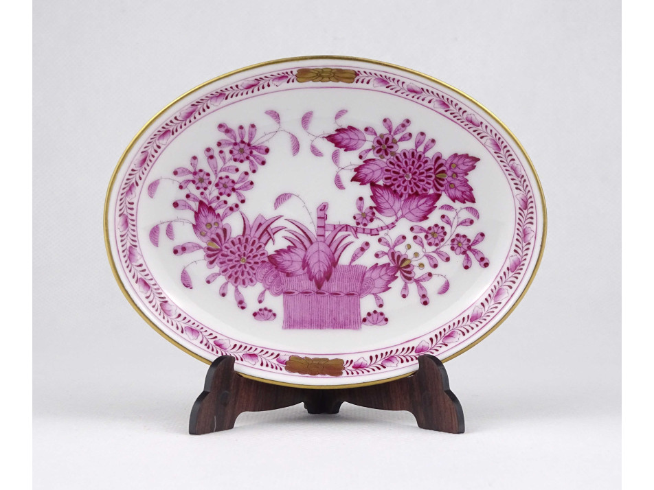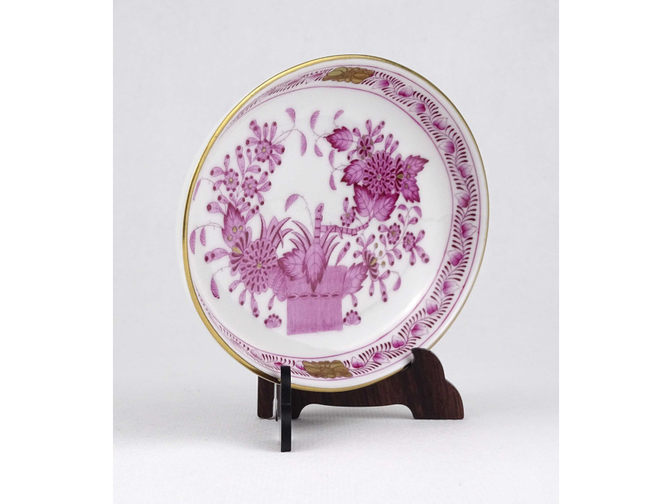 Hibátlan állapotú, lila indiai kosár (Fleurs des Indes) mintával díszített Herendi porcelán hamutál, tálka.