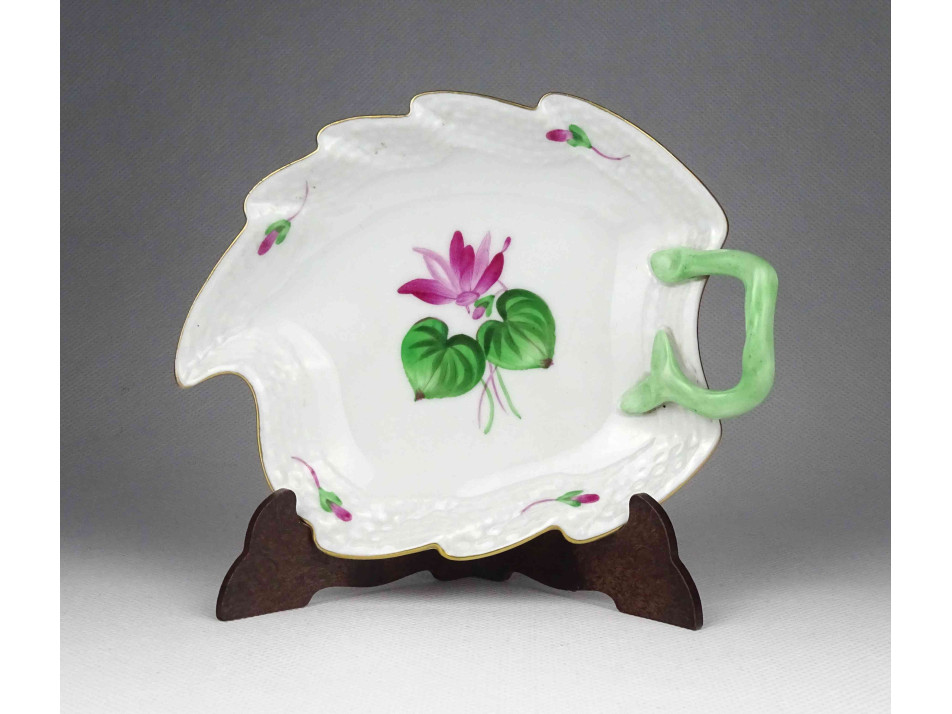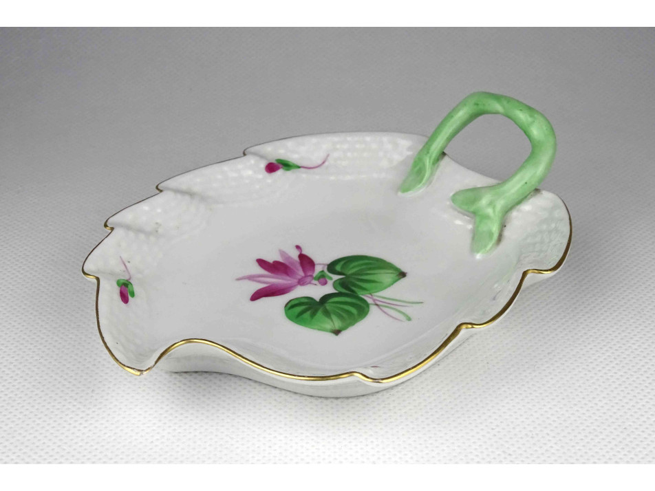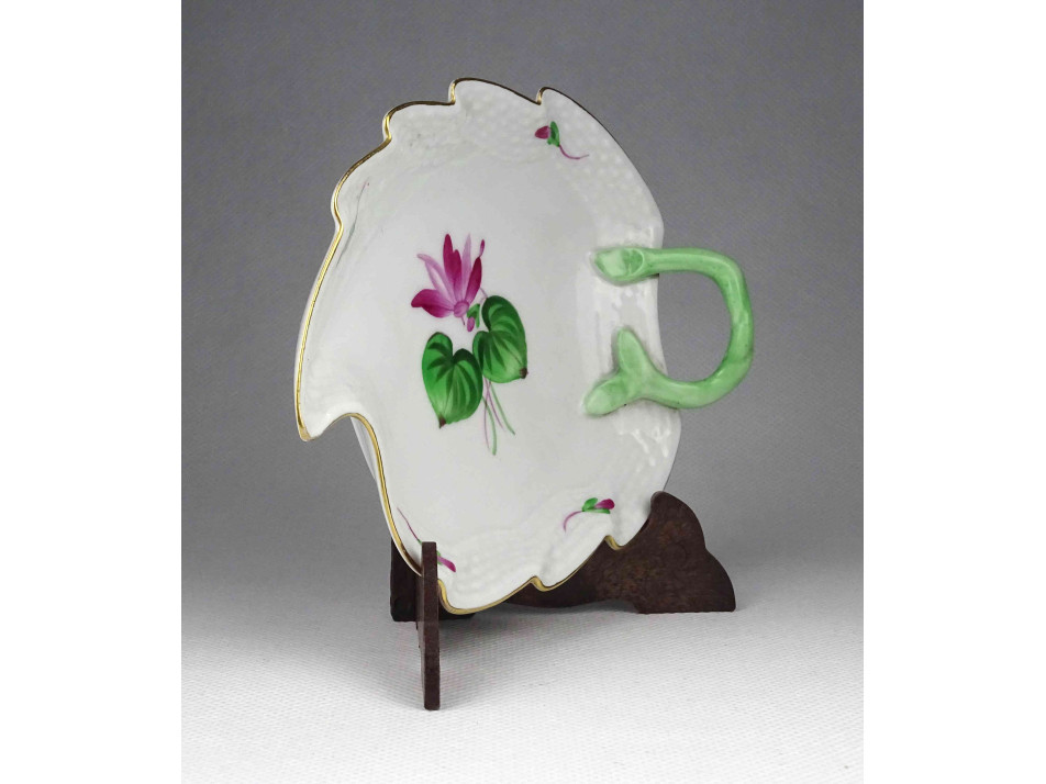 Régi virág mintás levél alakú Herendi porcelán tálka 15 cm
